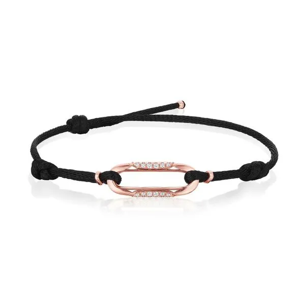 Link Bracelet with Diamonds on Black Cord Quenan's Fine Jewelers Georgetown, TX